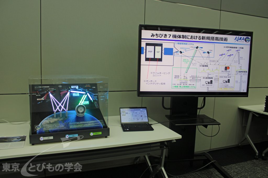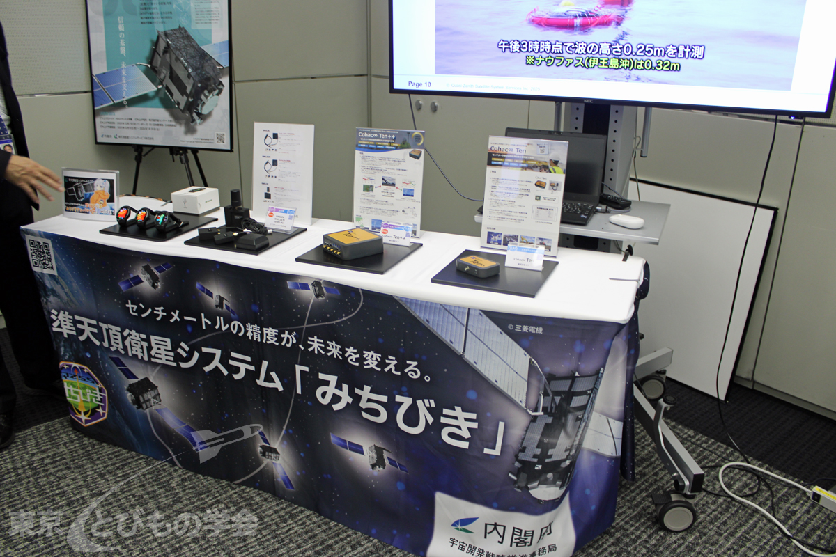 説明会には会場となったNECを始め、内閣府、宇宙航空研究開発機構(以下、JAXA)、三菱電機株式会社(以下、三菱電機)が参加し、プレゼンテーションと質疑応答、展示が行われましたのでその様子を紹介します。